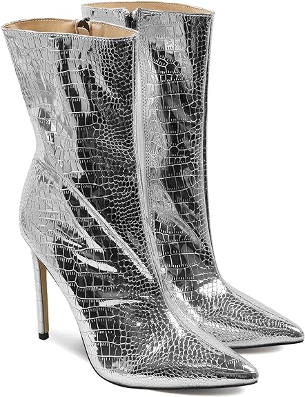 GetMoreBeauty Women’s High Heel Ankle Boots – Sexy Pointed Toe Mid Calf with Side Zipper